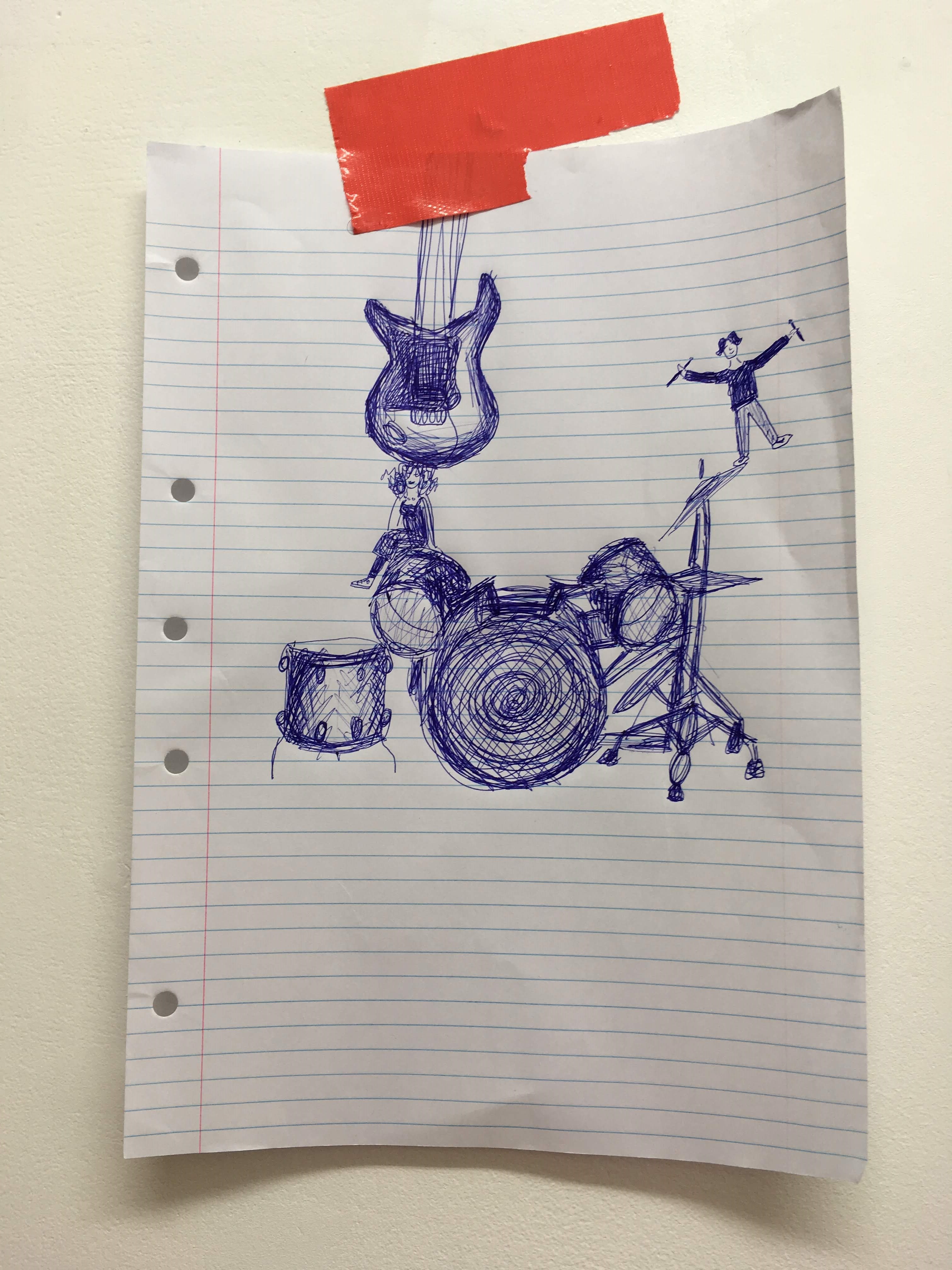 We had 1 week to produce a show, so we decided to bring in a drumkit and played it by ear. The end result was a combination of video works, on-site paintings, custom egg-carton vocals booth, and a collection of lo-fi tracks.